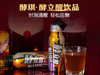 酵琪(JoQi)酵立醒饮品是一款风味及效果俱佳的解酒护肝饮品。其是由玉米肽、麦芽粉、功能氨基酸、维生素、果蔬汁等精心研制而成的功能果汁饮料;其相对于以葛根、枳椇子等为主要成分的解酒产品,见效快、效果好、档次高,能有效解决广大饮酒人群酒量低、酒后宿醉难受或失态的痛点。